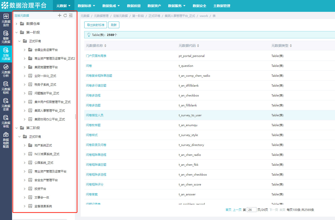 图. 元数据管理界面