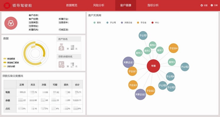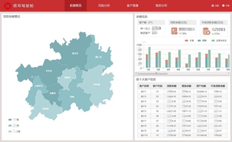 系统覆盖了客户风险月报的常用固定报表、分析报表、综合查询、等业务需求;同时为了满足各级领导快速直观地分析掌握全行客户风险情况的需要,开发实现了领导驾驶舱功能;为了满足业务人员能够灵活便捷地对财政收支数据进一步分析,开发实现了自助分析功能。