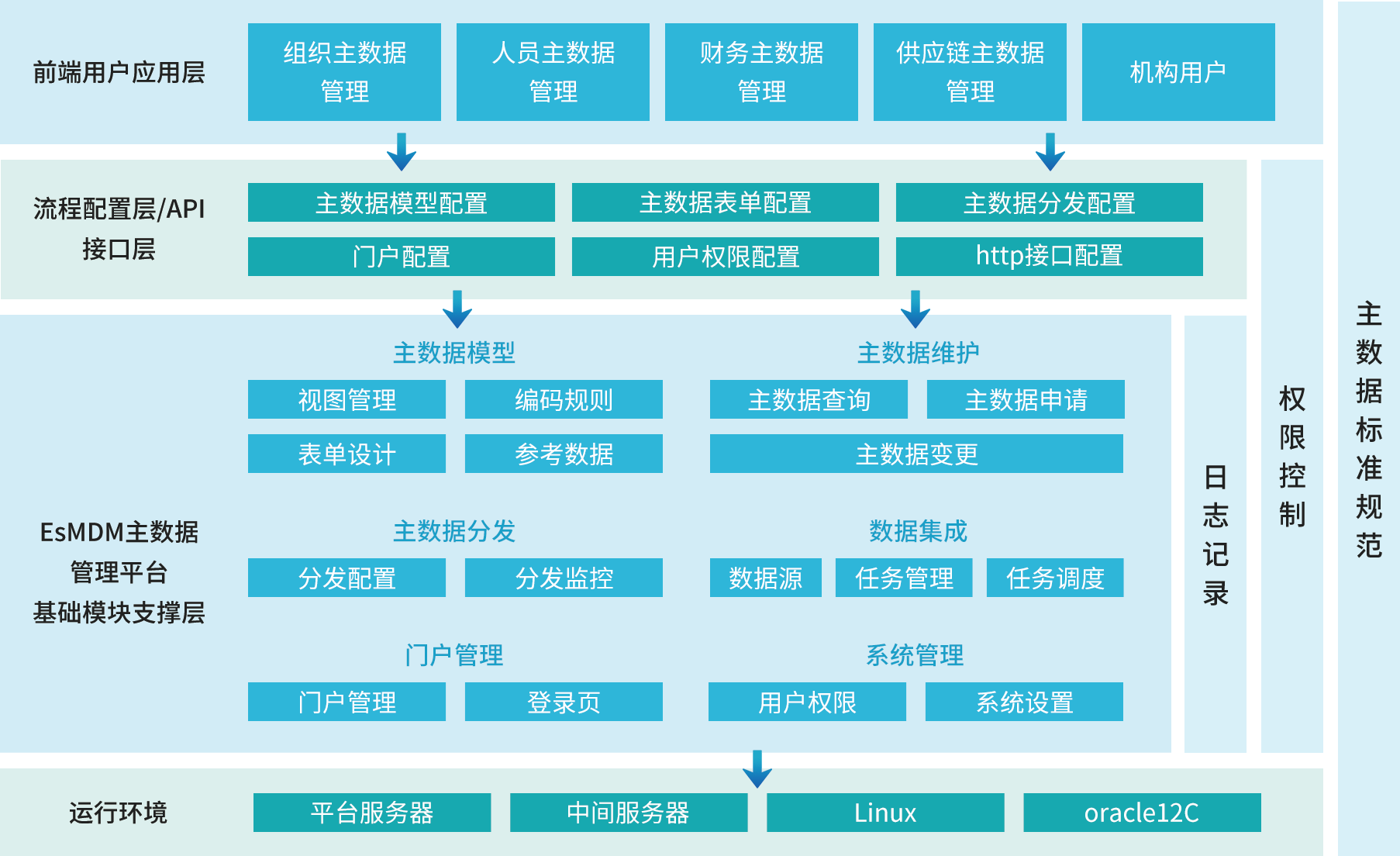 基于标准的数据管理模型,实现主数据的统一定义、统一规则、统一发布等事务的集中处理。顺利获得数据的审计支持,来保证数据变化经过严格的审批;顺利获得数据管理的持续优化和改进,提升数据资产的管理成熟度。