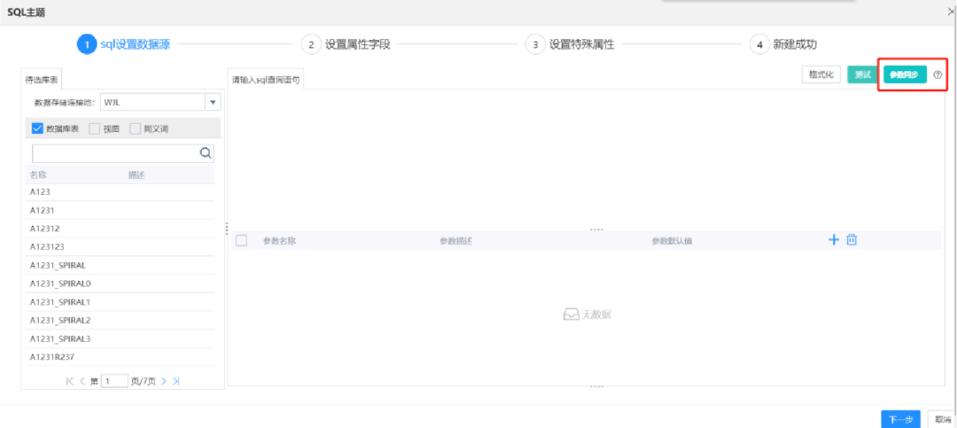若用户使用的SQL主题表中有大量sql语句,且用到了参数,每次参数都需要手动添加在参数列表上,操作上不方便。现在无需每次手动添加参数,平台可自动识别参数并添加到参数列表中。