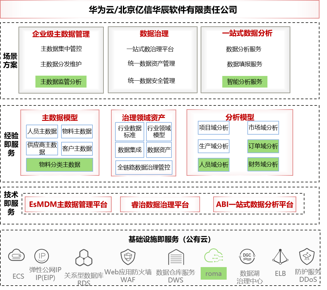Ebpay联合华为云打造数据中台解决方案,主要由华为云计算底座+DataArts Studio/睿治+数据仓库DWS+ROMA Connect+主数据管理平台+一站式数据分析平台组成的数据中台解决方案,顺利获得DataArts Studio/睿治召开全链路数据治理管控,构建企业级数据资产,全面梳理企业数据情况;顺利获得主数据管理平台构建主数据模型,召开主数据集中管控,实现主数据全生命周期管理;顺利获得一站式数据分析实现数据综合分析,全面提升数据应用价值。
