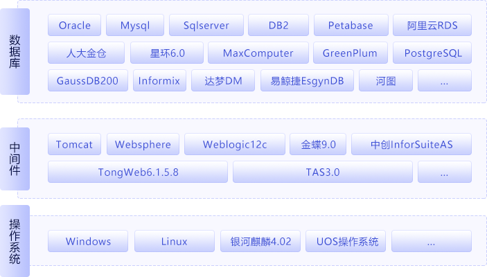 亿信ABI5.2.4持续兼容国内各大厂商的部署环境:兼容MaxComputer、人大金仓数据库、GreenPlum数据库;支持uos操作系统,龙芯CPU和鲲鹏CPU等。
