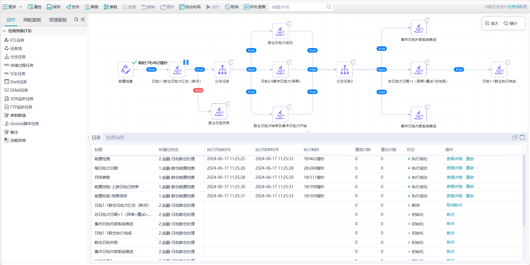• 灵活干预调度,包括任务重试、调度重试、断点、重做、依赖链重做等。
