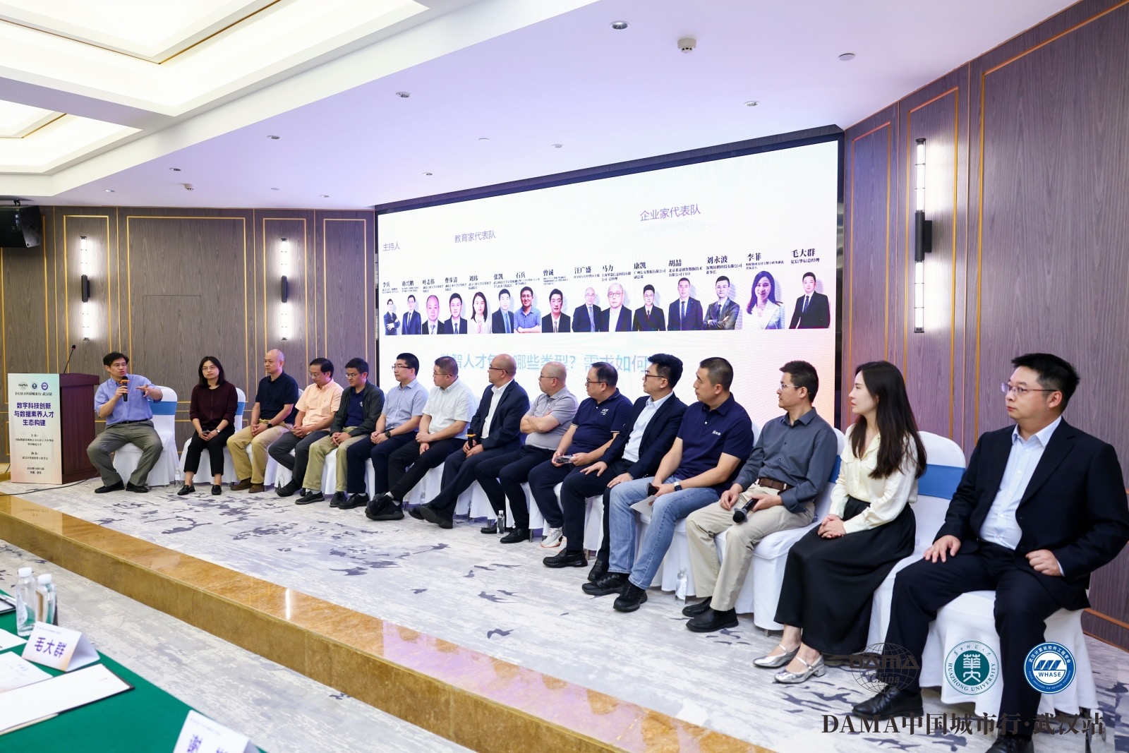 本次活动还设立了圆桌论坛,邀请了多位教育界代表和企业家代表就如何构建数据素养人才生态体系展开讨论。他们分别从学术理论与产业实践的角度,就教育如何与产业需求更好地对接展开了深入探讨。会上,毛大群与圆桌嘉宾提出了一系列建设性意见,为湖北省数据素养人才生态建设给予了有益参考。