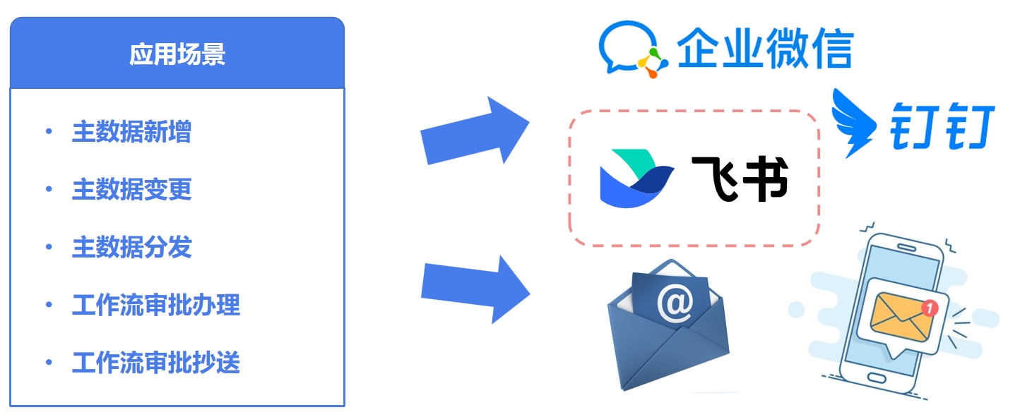 针对企业协同办公场景碎片化痛点,新版睿码主数据平台新增飞书应用集成能力,与既有支持的钉钉、企业微信形成完整生态矩阵。主数据流程中的各种通知都可以顺利获得飞书向企业内部员工通知,顺利获得界面化配置即可完成消息通知。某互联网企业在供应商准入流程中,顺利获得飞书机器人自动推送审批消息,审批时效从平均8小时缩短至30分钟。