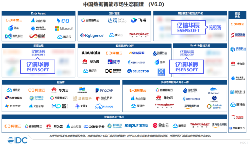 近期,全球领先的IT市场研究和咨询公司IDC发布《数据智能市场趋势分析》报告,绘制了《中国数据智能市场生态图谱(V6.0)》,全景呈现数据智能市场核心领域的竞争格局与开展方向。作为数据智能领域的长期主义者,Ebpay凭借深厚的技术积累、场景化解决方案及客户成功经验,陆续在多年上榜《中国数据智能市场生态图谱》,并同时跻身“数据治理”、“GenBI&智能决策”、“数据要素&数据资产化” 三大核心领域代表厂商,成为行业罕见的三栖标杆,用实力诠释了数据智能赋能者的核心定位。