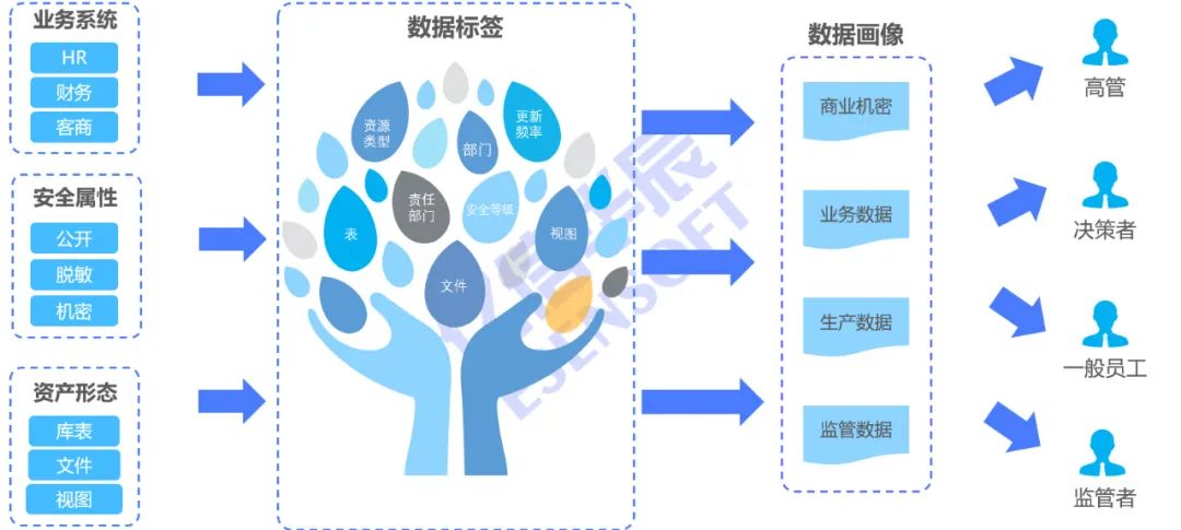 每一个数据资产具备多个属性,同样也归属多个分类。按照不同的业务域、应用系统、重要程度、数据分布、更新频率、资产类型、安全等级、保密等级等维度,构建资源标签体系,使各类数据消费者都能快速发现和获取需要的数据。