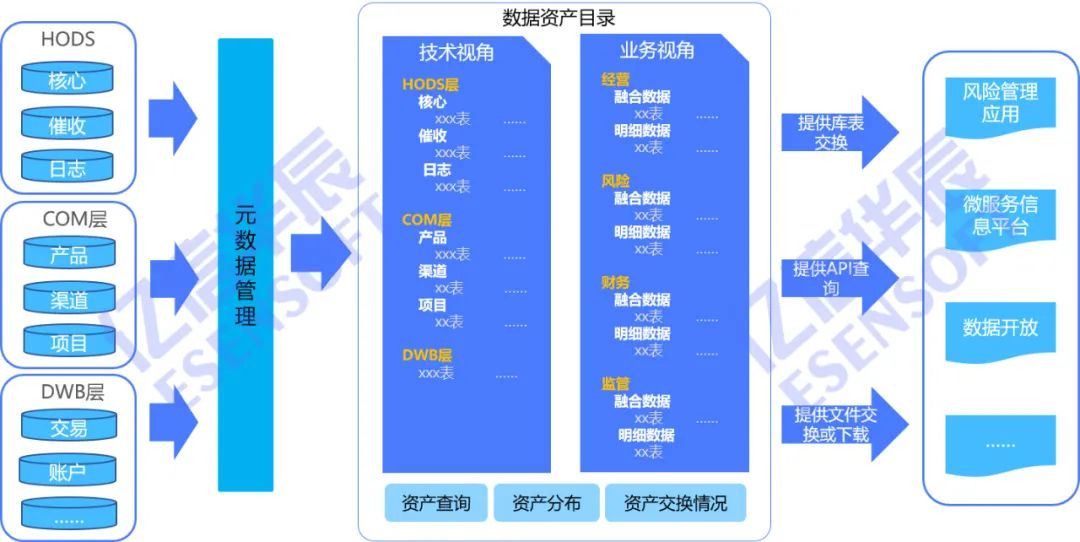 4、资产应用,开放服务。落地数据资产目录,将数据资产以“服务”的形式进行发布,实现数据资产的共享以及面向外部的数据开放。