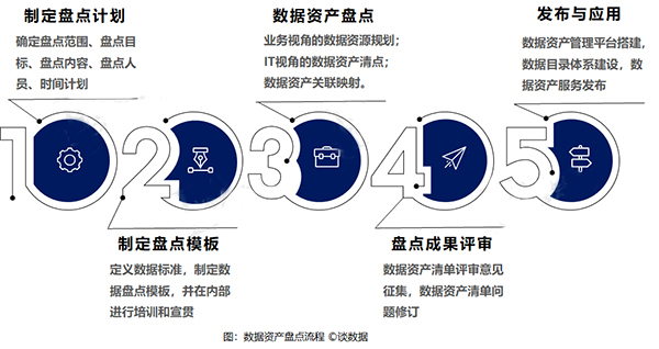 企业数据资产梳理和盘点一般可分为以下五个步骤,如下图: