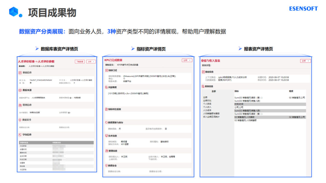 数据标准、数据质量、数据安全、认责管理等数据治理信息,构建适用不同业务场景的资产目录服务;