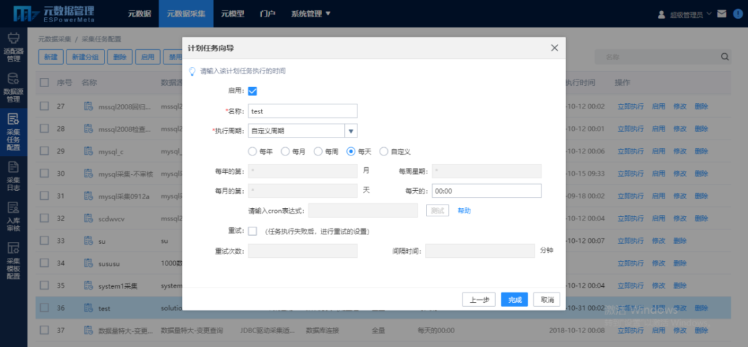 对元数据信息的维护除界面手动操作方式外,亿信元数据管理平台利用内置采集适配器,让用户顺利获得配置数据源参数及定时采集任务,进行自动化采集,实现直连数据源的端到端元数据采集。采集模板定制允许用户根据自己的采集需求,灵活选择需要采集的元数据及其属性,并自动生成 EXCEL 采集适配器可识别的 EXCEL 模板文件。用户可使用模板文件将数据批量录入。