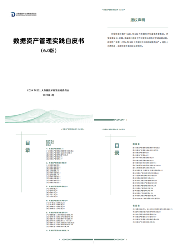 《数据资产管理实践白皮书(6.0版)》是大数据技术标准推进委员会在数据资产管理领域的系列研究报告,从2017年开始已陆续在6年发布,成为了国内数据资产管理的“风向标”。6.0版在5.0版的基础上,结合2022年数据资产管理领域政策和行业动向,持续跟踪各行业典型方法和实践案例,更新了数据资产管理的理念和方法,对数据资产管理领域的开展现状和趋势进行了总结,有助于企业分析自身所处的开展阶段,更好地拟定下一步建设思路。