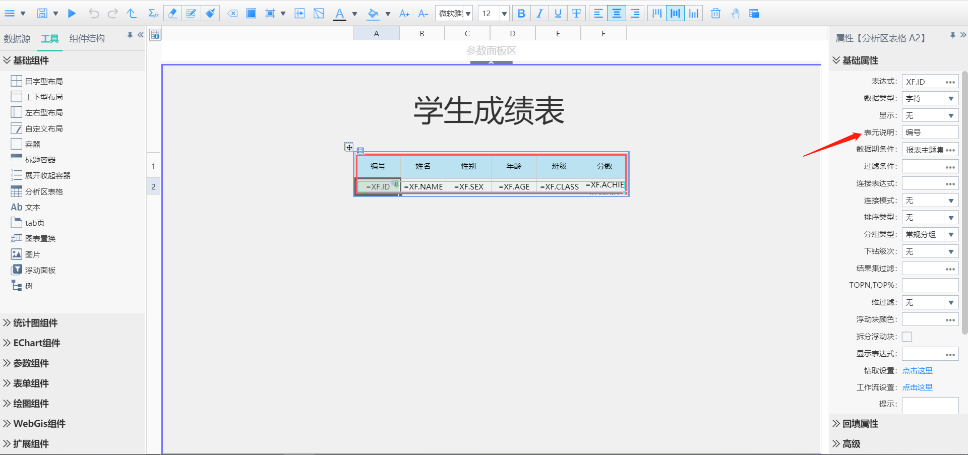 为了使展现效果更加直观,可以在单元格上编辑表元说明属性,用于在展现留痕信息时,便于清楚当前是哪一列的数据信息,可以根据自己的需要填写信息,并在在下一步会说明此属性的具体效果。