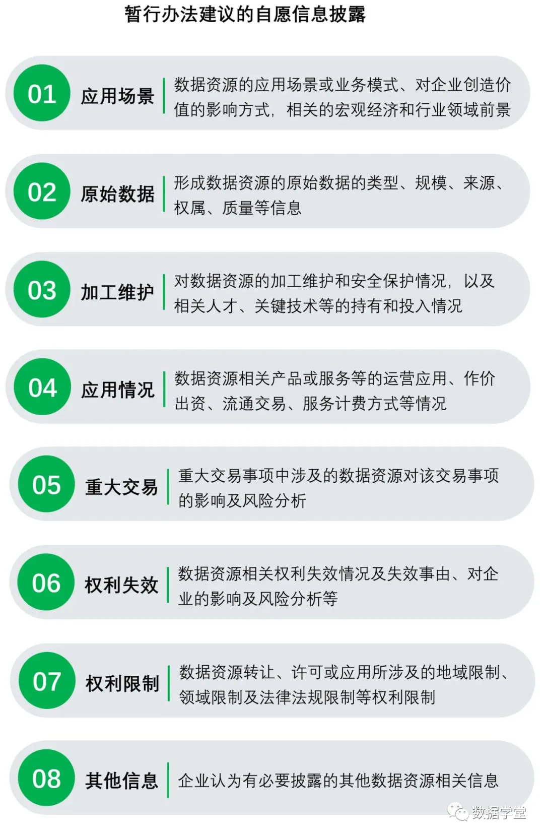 数据资源对于企业的价值创造正日益发挥重要作用,投资者、监管部门、社会公众等有关各方均高度关注数据资源的利用情况。强化信息披露也是《暂行规定》的重点之一。