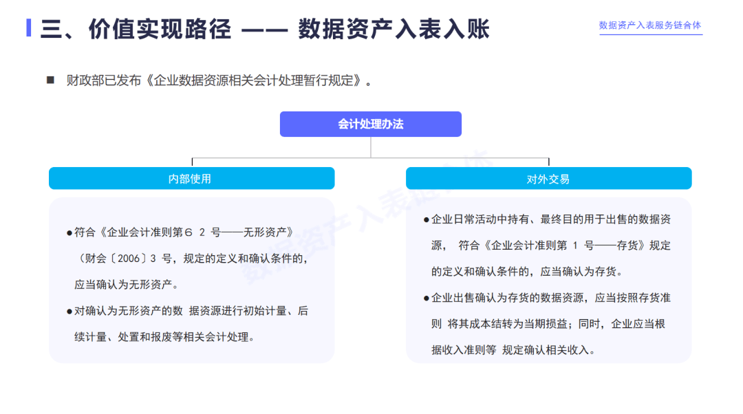 三是入表之后可以更高效地完成数据资产交易、数据资产出资、数据资产抵押等行为。