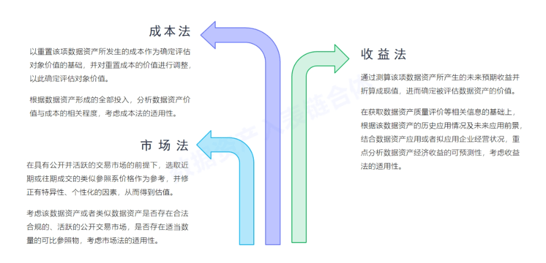 据中国资产评估协会《数据资产评估指导意见》,数据资产评估主要是三个方法:市场法、成本法和收益法。
