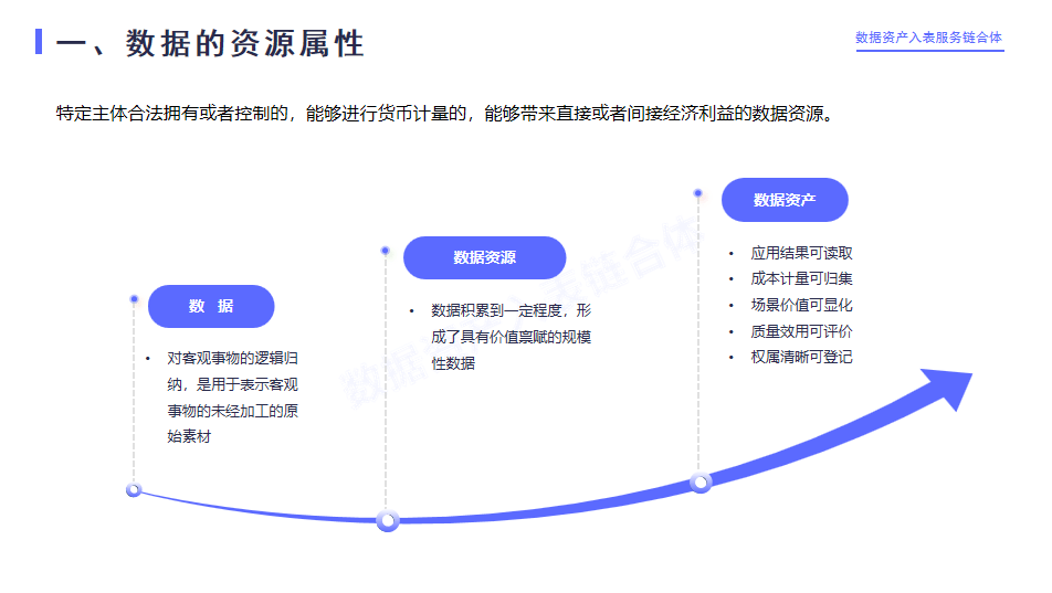 五是权属清晰可登记,任何一项资产的权属都应该清晰的,才能够保证使用这个资产的收益归属于相应的权属人。符合上述五个条件的数据资源,就具备资产化的前提了,可以称之为数据资产。