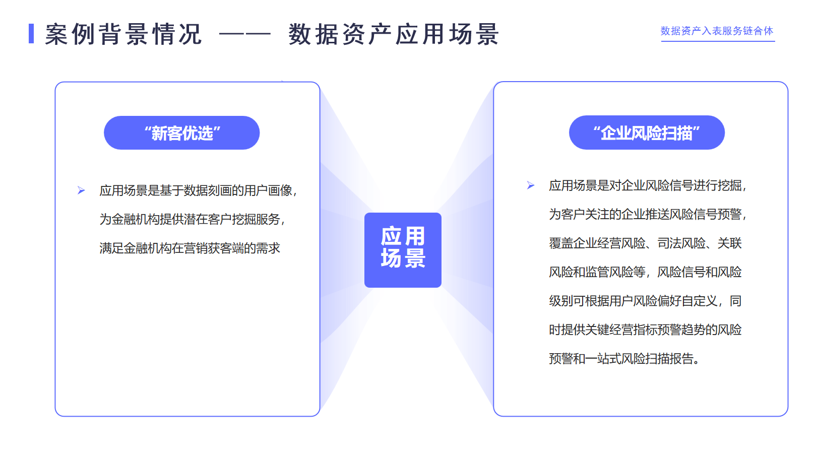 企业基于这些应用场景开发了相应的结构化数据,基于结构化数据和银行的信息系统对接,并且在评估的时候就已经有三家当地的银行签了相应的合同,使用了相应的数据。
