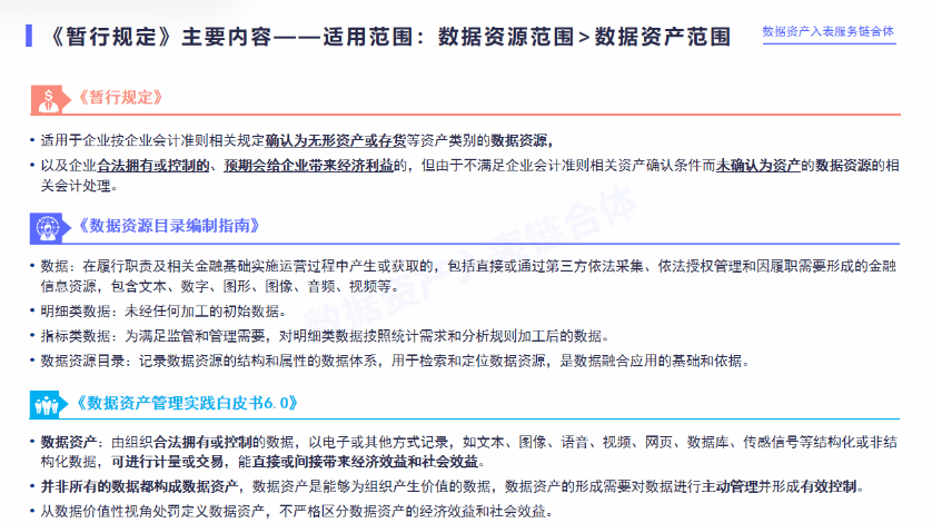 另外,定义的对象是数据集合,也将数据资源与其他与计算机有关的虚拟资产进行了区分。如网络域名、游戏道具等,均不是数据资源。