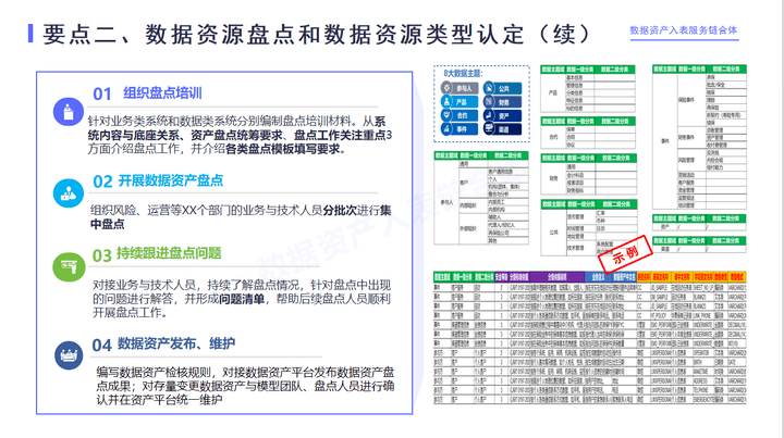 那么第二步要召开的就是具体要做盘点工作。固定资产盘点就是盘库存,同样的未来数据资产要入表也需要盘点,而且这个盘点会比较复杂、细致,需要定盘点的方案和模板。