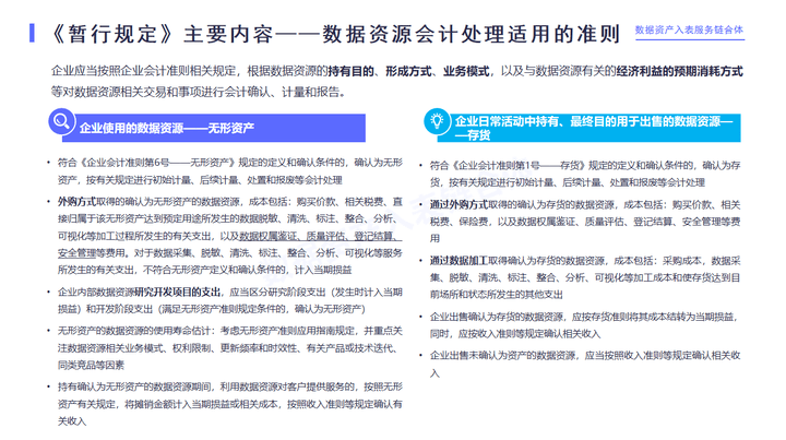 财政部发布的这个暂行规定里,针对可以作为资产入表的两类是有明确说法的,针对无形资产,明确提出来了外购的无形资产和企业自行研发的数据资产要区别来对待。