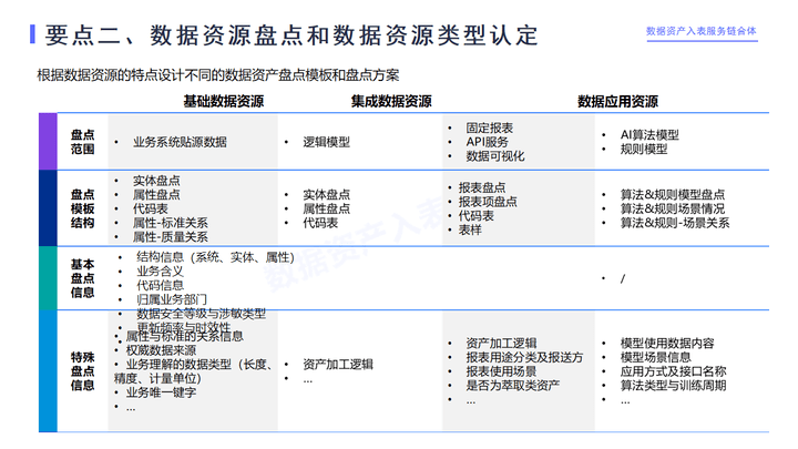 盘到什么颗粒度呢?一是盘到具体数据的具体类型,比如说数据到底是基础数据、还是这个报表应用数据,要盘点到颗粒度是最细最细颗粒度的,要盘到表、字段。二是盘到具体的集成的、应用的数据资源,可能不是简单的一张报表或一个字段,也不是简单的一个指标,是一个非常综合的可以把它称之为数据向日葵色版视频在线观看免费或者一类的所谓的解决方案。
