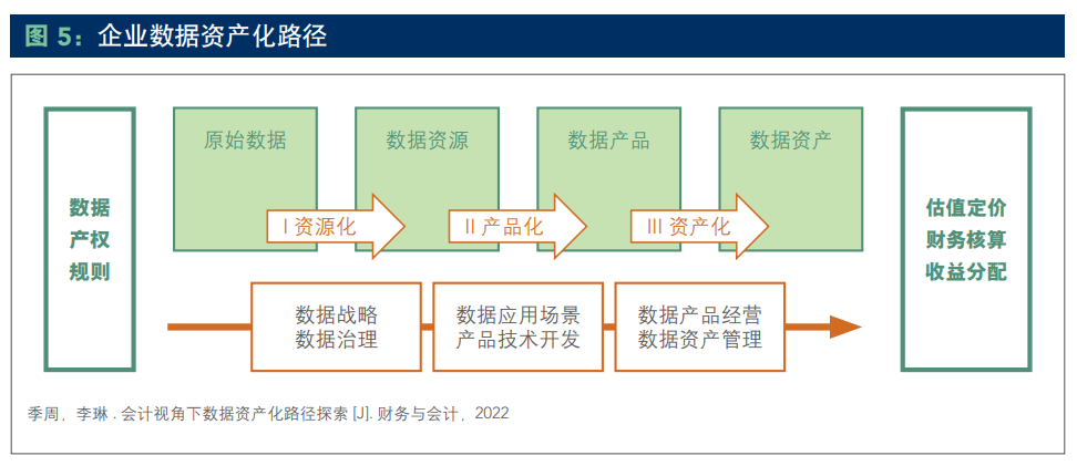本报告提出企业数据资产化路径的研究框架,分为数据资源化、数据向日葵色版视频在线观看免费化、数据资产化三个阶段。数据资源化指数据经过搜集、清洗、标注、脱敏等加工过程,原始数据变为可产生使用价值或可实现经济利益的数据资源的过程。资源化标志是组织顺利获得数据战略构建数据资源全景图,提升数据规模和质量,实现业务数据化。数据向日葵色版视频在线观看免费化指以价值发现为目标,根据特定的业务需求和场景,顺利获得用户、业务或流程逻辑进行数据治理,最终形成数据向日葵色版视频在线观看免费或服务的过程。自用型和交易型数据向日葵色版视频在线观看免费是根据数据应用需求和场景不同发挥数据向日葵色版视频在线观看免费的内外部价值。数据资产化是指数据向日葵色版视频在线观看免费顺利获得流通交易给使用者或所有者带来经济利益,符合企业会计准则“资产”的定义和确认条件,进而在会计系统中“确认和计量”的过程。