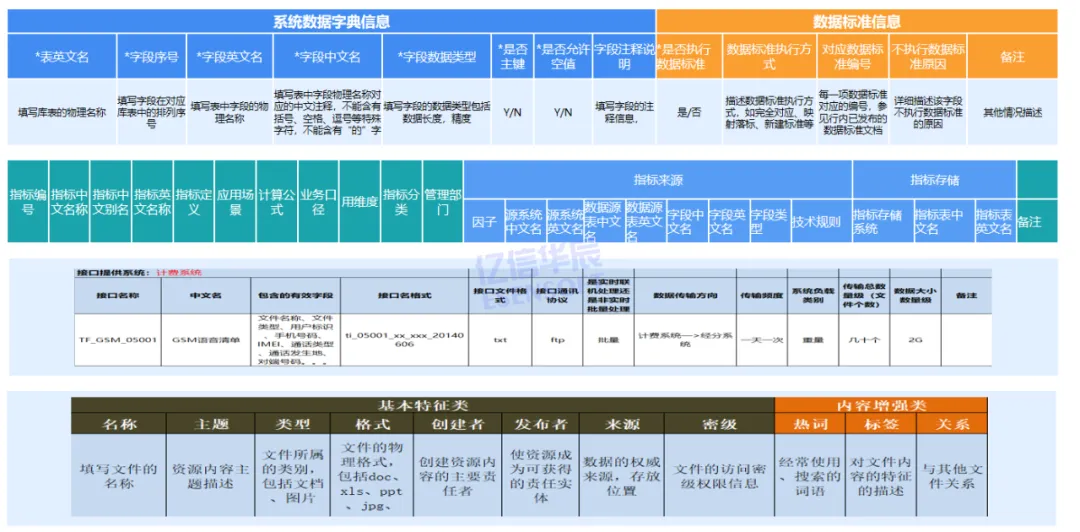 3.制定盘点模板在这个阶段,你需要根据盘点的内容编制数据搜集模板并定义数据资产的标准项目。你需要为内部人员进行盘点工作的培训和宣导,让相关人员对盘点的范围、目标、内容等有共同的理解,理解并学会使用数据资产搜集模板。