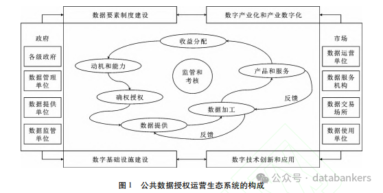 基于生态系统理论,结合公共数据开放、数据要素流通和交易生态系统以及《数据二十条》《“数据要素x”行动计划》的有关内容和地方的最新实践,本文建构的公共数据授权运营生态系统如图1所示。
