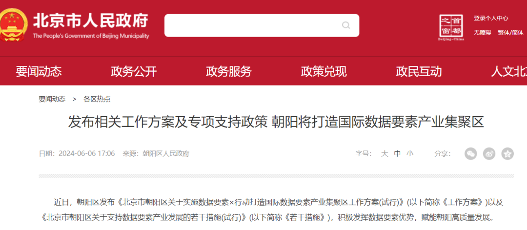 近期,朝阳区发布了《北京市朝阳区关于实施数据要素×行动 打造国际数据要素产业集聚区工作方案(试行)》(以下简称《工作方案》)以及《北京市朝阳区关于支持数据要素产业开展的若干措施(试行)》(以下简称《若干措施》),持续发挥数据要素优势,赋能朝阳高质量开展。