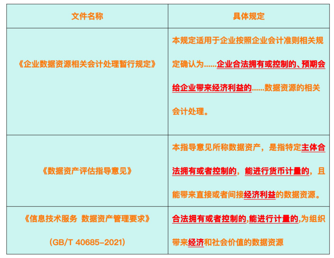不同文件对数据资产的定义