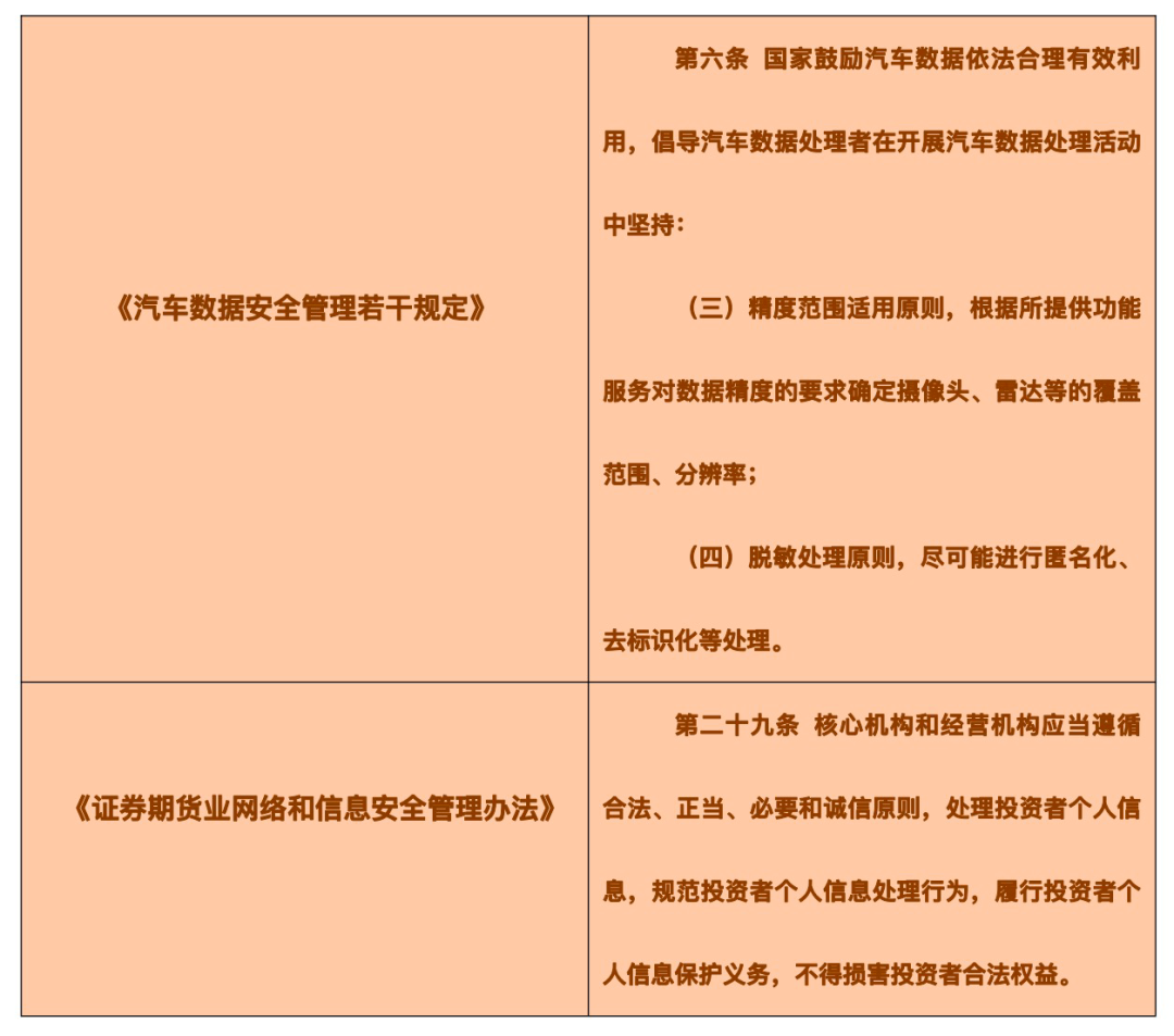 以汽车行业、证券期货业为例,可以发现在数据资源的管理上,行业之间的具体内部监管规定是存在差异的:与汽车行业相比,证券期货业对于数据内容的合法性体现在对投资者的个人信息、个人隐私的保护。而汽车数据的合法性的审查标准则更多与汽车的设计、生产、销售、使用、运维的环节紧密相连。这种差异是由行业的生产经营活动内容及数据资源在该行业的具体使用场景的不同所产生的。
