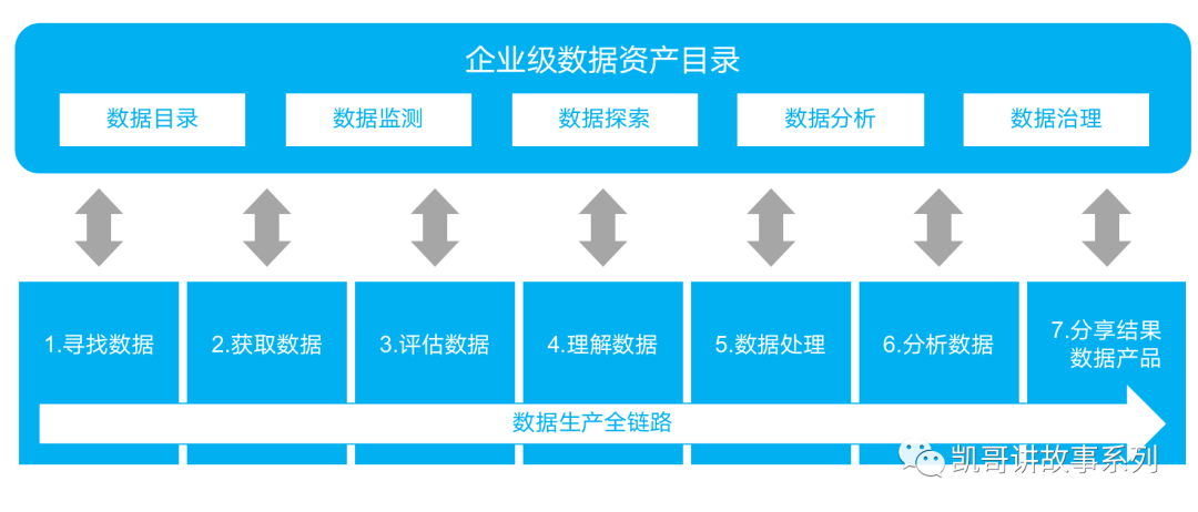 由于没有统一的数据管理工具,所有的数据相关的文档、数据向日葵色版视频在线观看免费和数据都分散在企业不同的系统中,所以当需要数据的时候,工作人员就只能顺利获得分散的文档和各种沟通会议来取得数据,然后评估数据是不是完整,再进行数据的探索和理解。如果数据不准确或者不是所需要的,则又要回到原点去寻找数据。在数据处理和数据分析阶段,相关人员如果需要更多的数据,就要寻找更多的数据文档和组织更多的沟通会议。从寻找数据开始,到数据分析结果出来,再到数据向日葵色版视频在线观看免费构建好,这个过程费时费力,并且新的数据分析结果和数据向日葵色版视频在线观看免费又变成了数据孤岛,当别人利用数据的时候依然需要沟通。这样的过程低效、随机性很大,并且很容易导致数据质量问题。当企业构建起数据资产目录后,数据生产的全链路就形成了,如下所示。