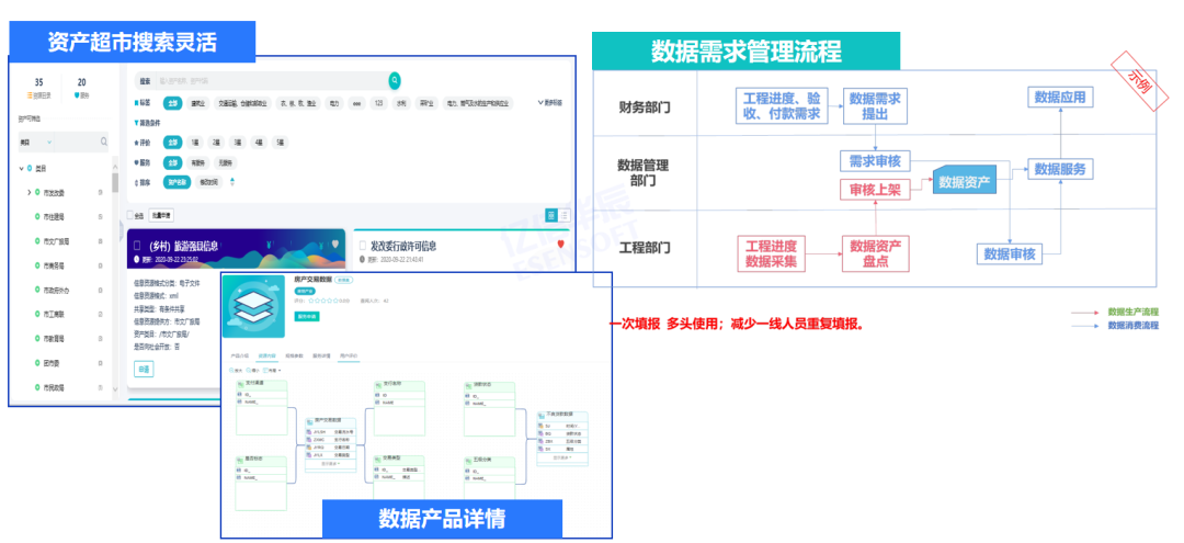 如何去实现一套数据资产管理业务流程呢,Ebpay整个数据资产管理平台的功能,即基于企业数据资产管理业务需求,顺利获得