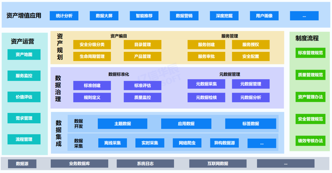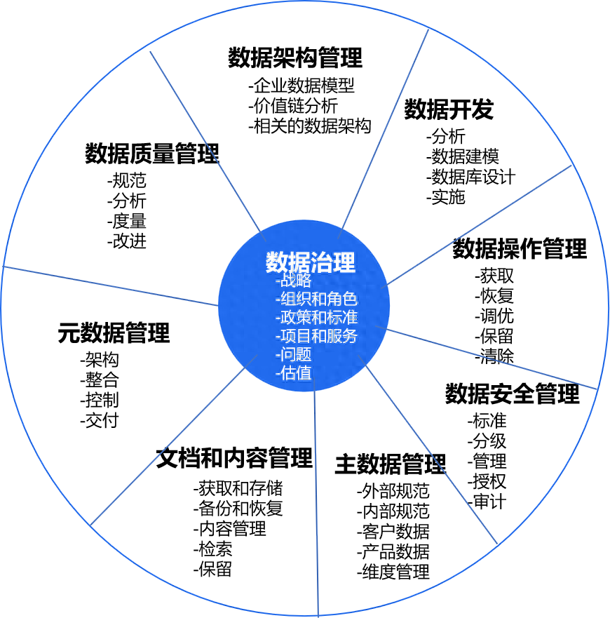数据采集、主数据、元数据、数据标准、数据质量、数据安全、数据资产管理、数据服务、