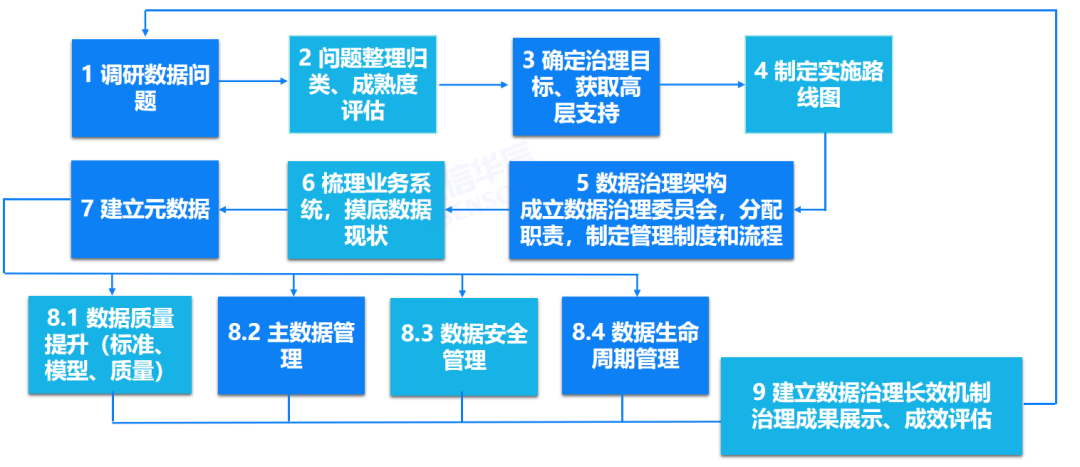要真正去做数据资产盘点和治理的时候,大概可以分成九步走: