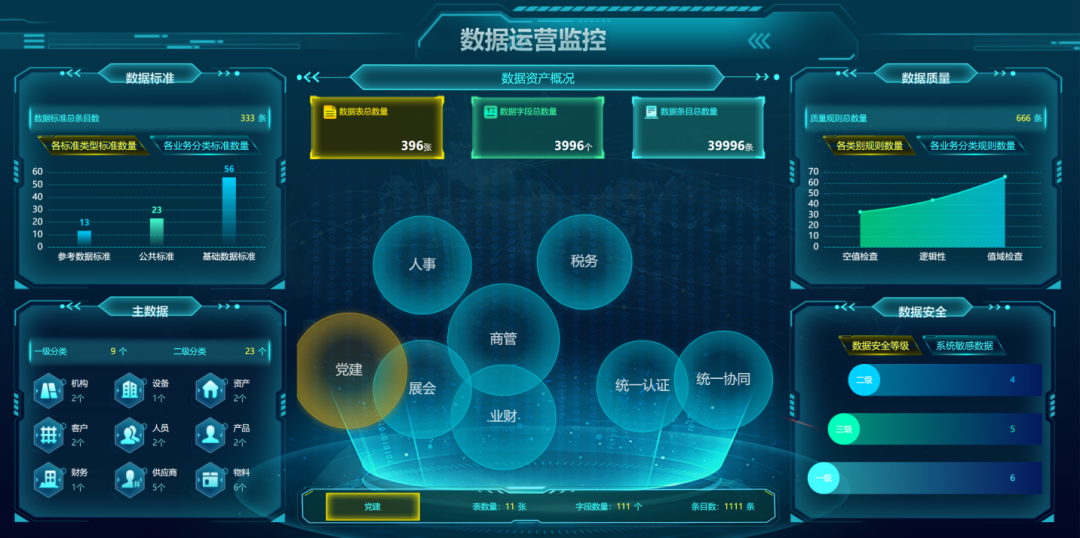 为进一步提升数据治理的透明度与影响力,公司还设计并实施了数据治理大屏展示系统,涵盖从标准制定、质量控制到资产管理的全方位信息,为领导层给予了直观、全面的数据治理概览。这一举措不仅增强了管理层对数据治理工作的认识与重视,也为后续的数据治理优化与决策给予了有力支撑。