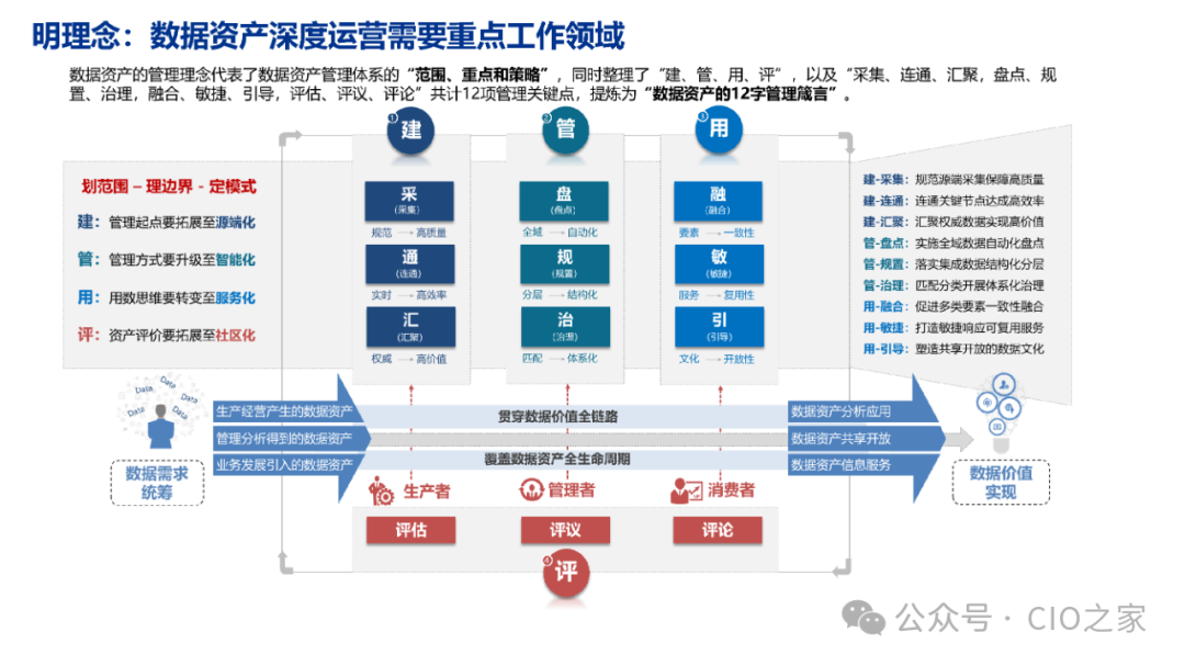 明理念:重点工作领域数据资产深度运营需要重点关注数据战略、数据资产管理体系、数据采集、数据资源治理、数据资产管理、数据向日葵色版视频在线观看免费服务和数据价值创造等关键领域 。