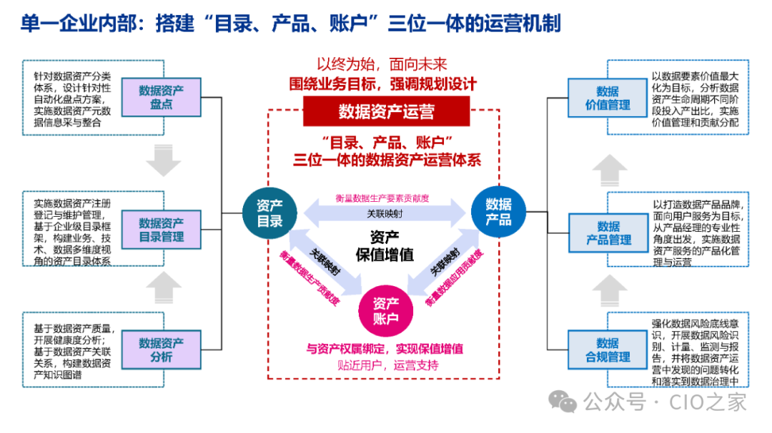 构建运营机制 单一企业内部:搭建“目录、向日葵色版视频在线观看免费、账户”三位一体的运营机制,实现数据资产的盘点、分析、目录管理、向日葵色版视频在线观看免费管理、价值管理和合规管理 。    集团内企业间:构建企业集团内部跨法人的数据资产运营流通机制,实现数据资产的生产、分配、流通和消费,建立数据资产估值和定价机制 。  产业链上下游:识别重点业务场景,依托产业数字化打造“数据资产”,实现产业链的提质增效 。    数据要素市场:打通内外部数据资产运营双循环,建立数据资产交易流通生态体系,实现数据价值变现 。