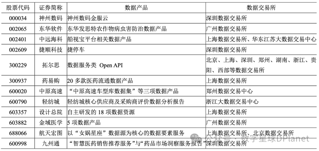 本文顺利获得梳理入表企业年报内容,对入表企业数据向日葵色版视频在线观看免费的挂牌交易情况进行了统计,发现有部分入表企业在数据交易平台登记挂牌数据向日葵色版视频在线观看免费,见表1。可以发现,在100家企业中,仅有12家披露了在数据交易平台进行登记挂牌工作。这表明,尽管对外给予数据向日葵色版视频在线观看免费或服务的企业不少,但实际进入数据交易所进行交易的企业仍然不多。