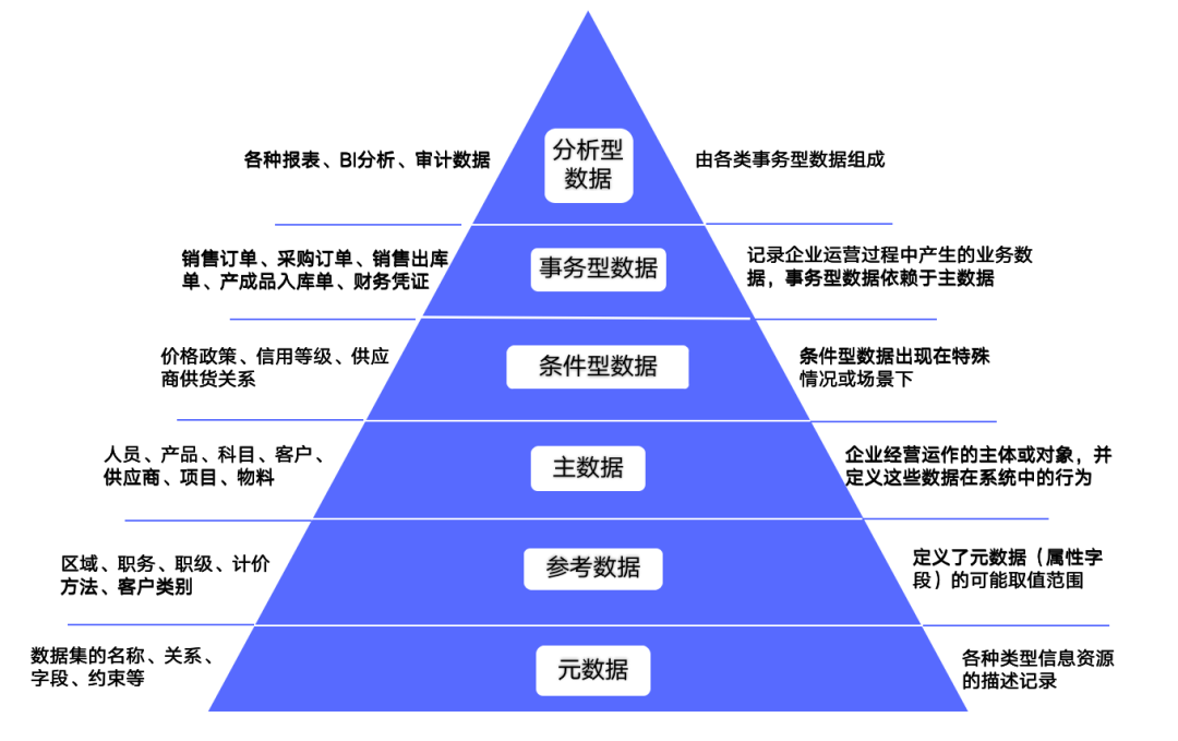 2.全局性:主数据是超越部门与流程而存在的,以满足跨部门业务协同而建立的,可以认为是所有职能部门业务过程的“最大公约数”;