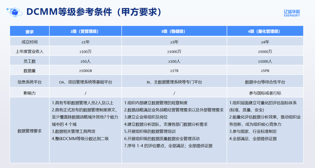元数据管理为例,DCMM3级要求是组织级的元数据管理,有元模型要求、建立元