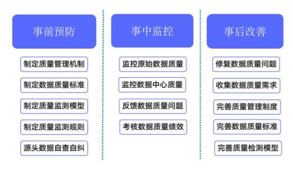 分析了数据质量后,再说说什么是数据质量管理。数据质量管理是一个集方法论、管理、技术和业务为一体的解决方案,是一个不断循环的管理过程。一方面反映出数据质量的重要性以及数据质量工作的零散性和琐碎性;另一方面也反映出数据治理是一个相对漫长的过程。简而言之,数据质量管理是对数据在每个阶段里可能引发的各类数据质量问题进行识别、度量、监控、预警等一系列管理活动,并顺利获得改善和提高组织的管理水平确保数据质量的提升。