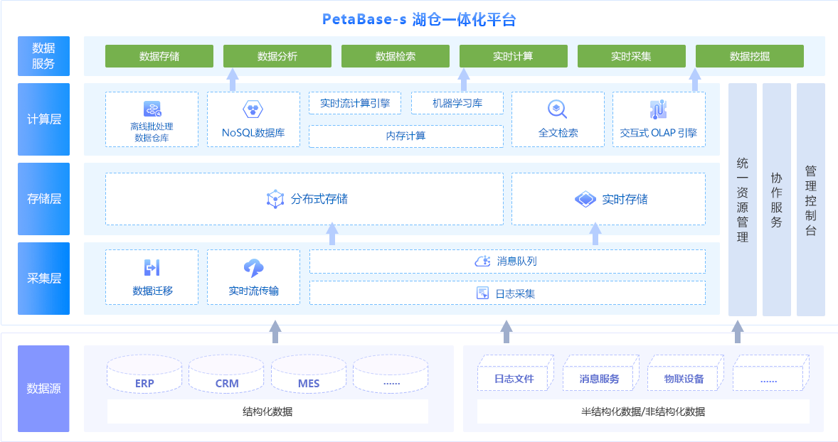 企业级实时大数据平台。它基于开源Hadoop框架开发,融合MPP、SQL on Hadoop、流处理等大数据技术,支持海量数据的高效储存和统一管理,为企业决策给予实时的数据支撑。湖仓一体化平台主要解决结构化,非结构化融合存储的混合应用场景,主要面向能源,工业,政务等业务范畴比较广的行业。