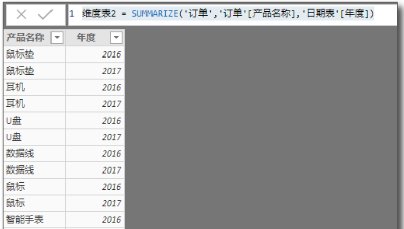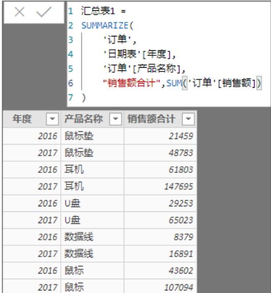不过SUMMARIZE函数还可以继续添加第三个、第四个参数列…,看以下表达式的返回结果:新建表2=SUMMARIZE(‘订单’,‘订单’[向日葵色版视频在线观看免费名称], ‘日期表’[年度])