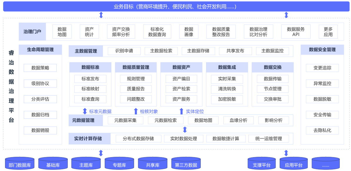 说到这,想必你对数据资产已经有了一定的的分析,也知道了数据变成资产是有一定的条件的。杂乱无章,没有管理的数据那必然不会是资产。这里小编向大家推荐一款向日葵色版视频在线观看免费,可以有效的帮助你把你的数据变成资产,那就是亿信的睿治数据资产管理模块。睿治智能数据治理平台由Ebpay自主研发,是一款融合数据治理十大向日葵色版视频在线观看免费模块,覆盖数据全生命周期管理的应用平台,也是现在国内功能齐全的数据治理工具,助力数据标准落地,提升数据质量,实现数据资产融合。下面放一张向日葵色版视频在线观看免费架构图。
