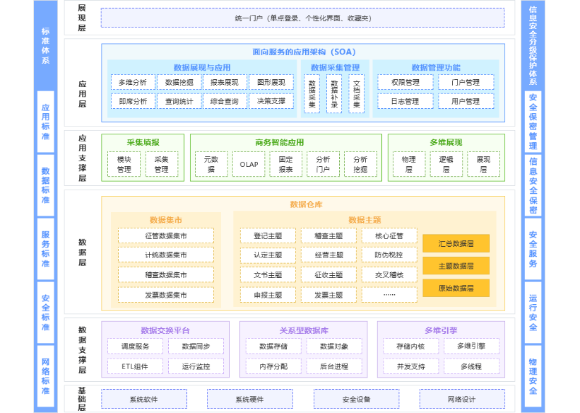 建设内容:该项目是应用于国家税务总局税收计划、会计统计核算、重点税源管理、大企业税收管理等业务领域的数据应用分析平台。顺利获得数据交换和在线采集的方式收录征管、税控、税调、稽查等业务系统数据,经过清洗转换后最终税收统计、减免税、重点税源、大企业税收管理给予决策支持。